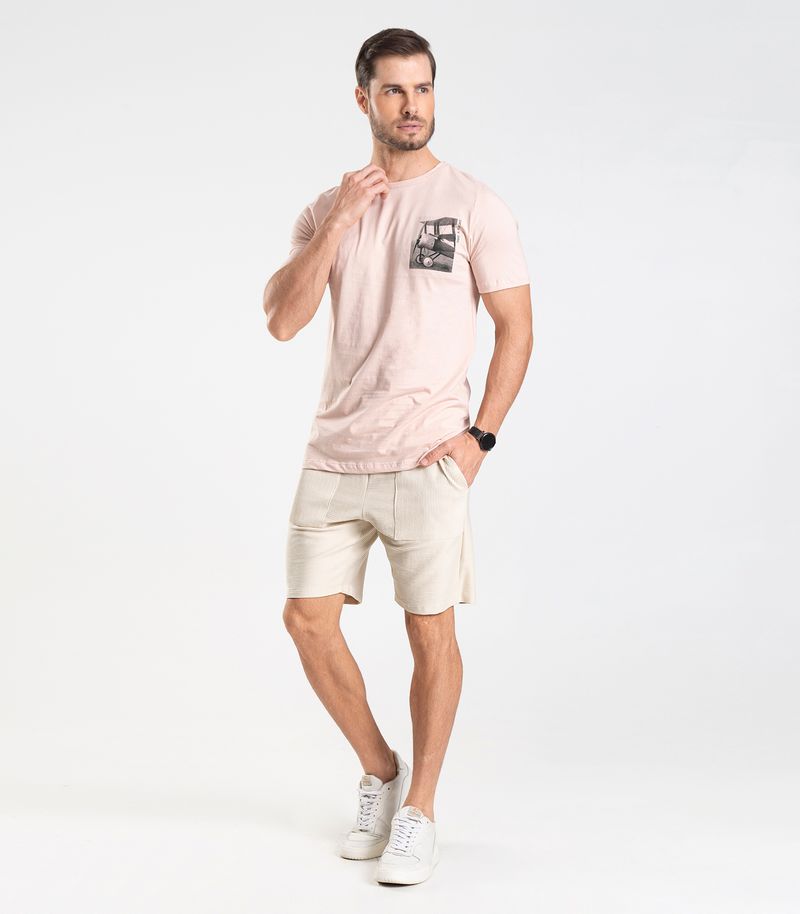 Bermuda Masculina Diametro, confeccionada em moletinho gorgurinho de caimento leve e sofisticado. Modelo de base lisa,