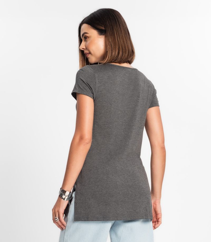 HomeFemininoBlusas e CamisetasManga CurtaBlusa Básica Alongada Feminina Rovitex Cinza