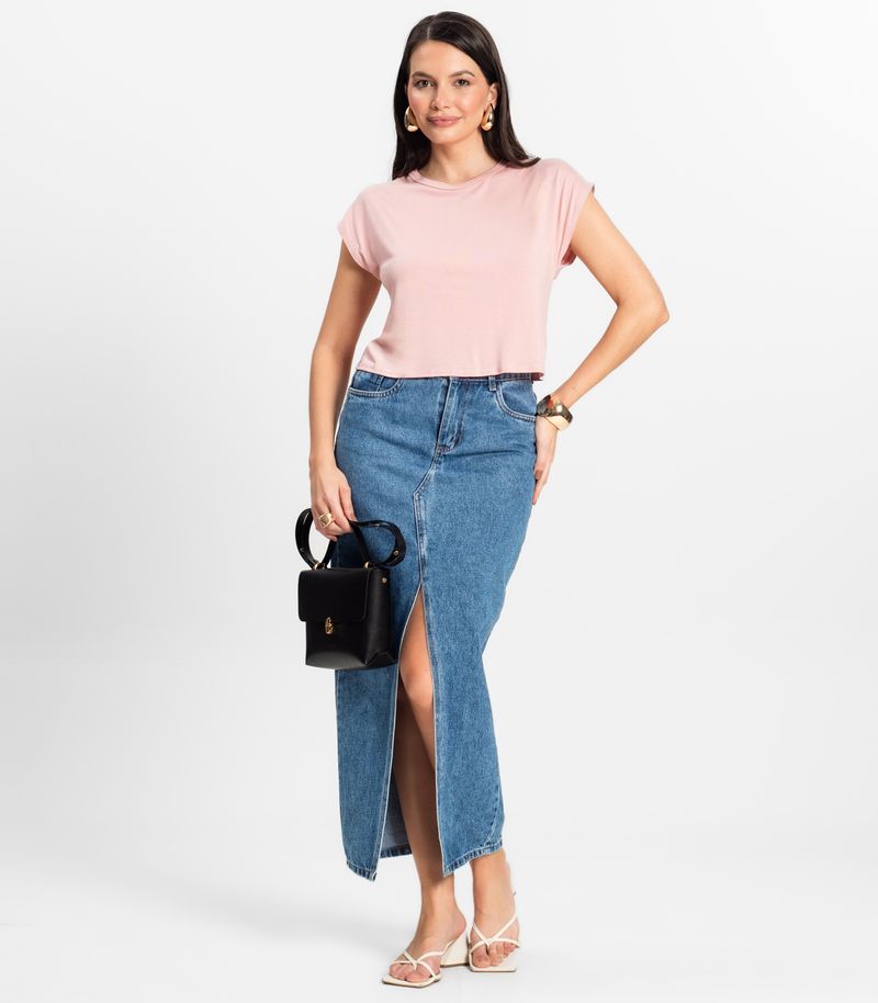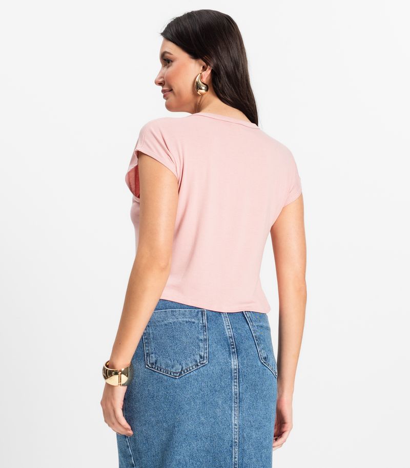 HomeFemininoBlusas e CamisetasManga CurtaBlusa Básica Feminina Viscotorcion Rovitex Rosa