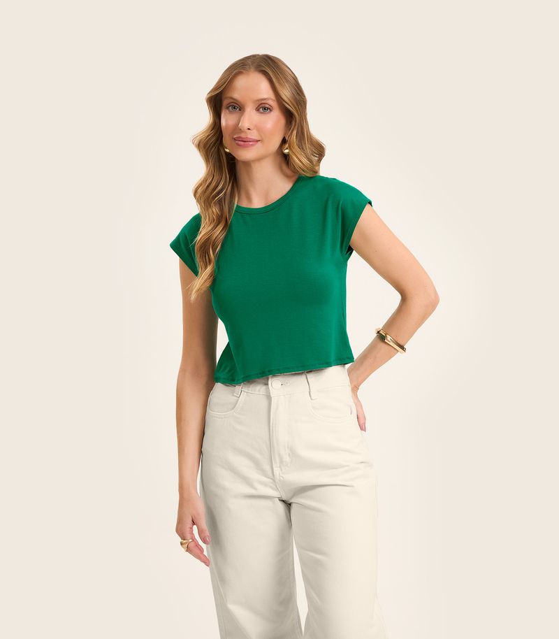 HomeFemininoBlusas e CamisetasManga CurtaBlusa Básica Feminina Viscotorcion Rovitex Verde