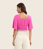 Blusa Cropped Feminina Endless confeccionada em visco maquinetada, com caimento leve e toque macio. Possui mangas amplas que trazem movimento e elegância à peça. O busto tem elástico embutido em toda a volta, proporcionando ajuste confortável e visual franzido. As alças são finas e delicadas, e o recorte duplo no busto reforça o acabamento. Ideal para looks leves e estilosos nos dias mais quentes.
