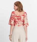 Blusa Cropped Feminina Endless confeccionada em meia malha, com decote quadrado e mangas amplas que proporcionam leveza e movimento. Possui alças com trança decorativa, ombros duplos e detalhe de friso no busto. A barra e as mangas têm acabamento com bainha reforçada para maior durabilidade. Conta ainda com estampa digital exclusiva e plaquinha metálica personalizada nas costas. Ideal para compor looks modernos e confortáveis.