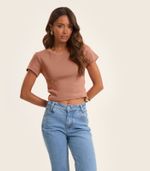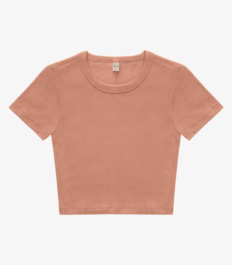 HomeFemininoBlusas e CamisetasManga CurtaBlusa Cropped Ribana Básica Rovitex Marrom