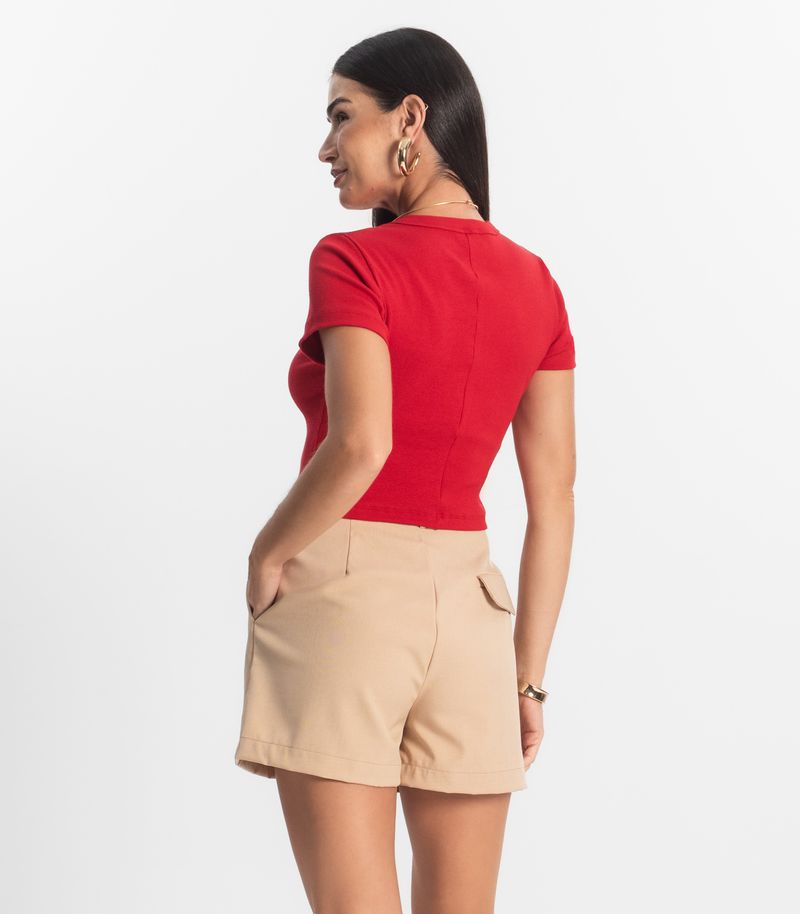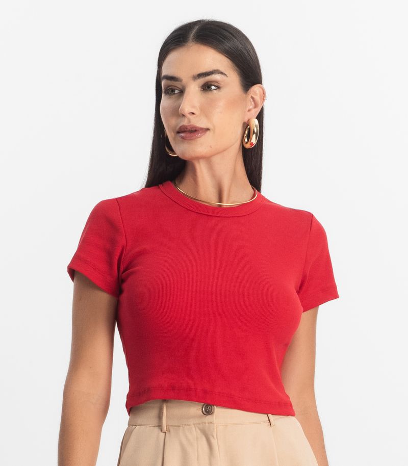 Blusa Cropped Ribana Básica Rovitex Vermelho