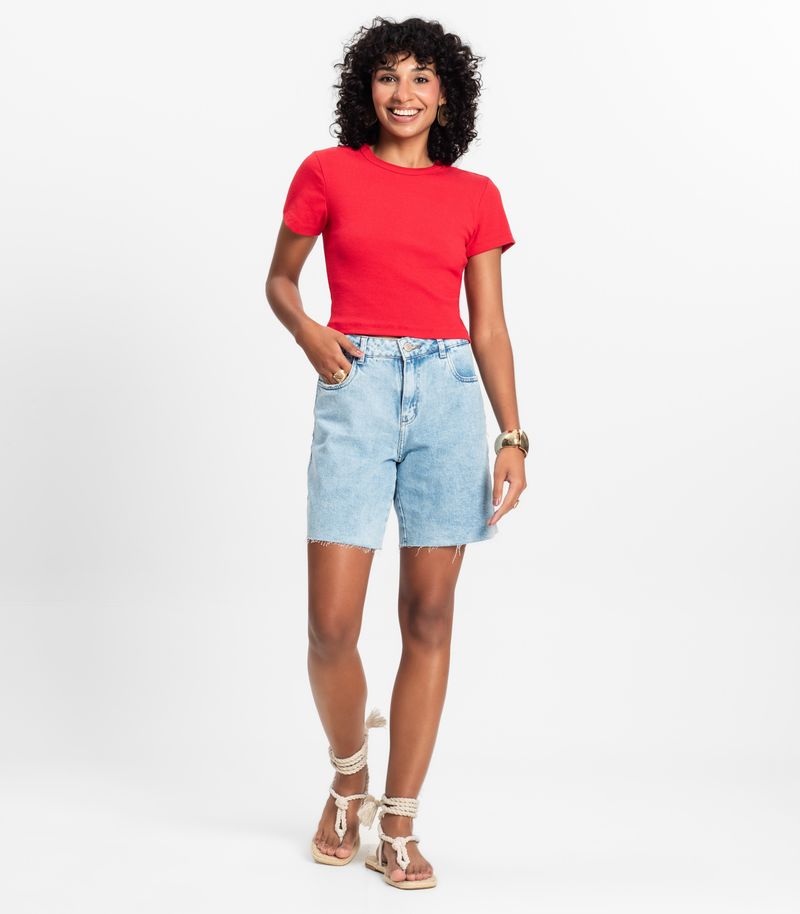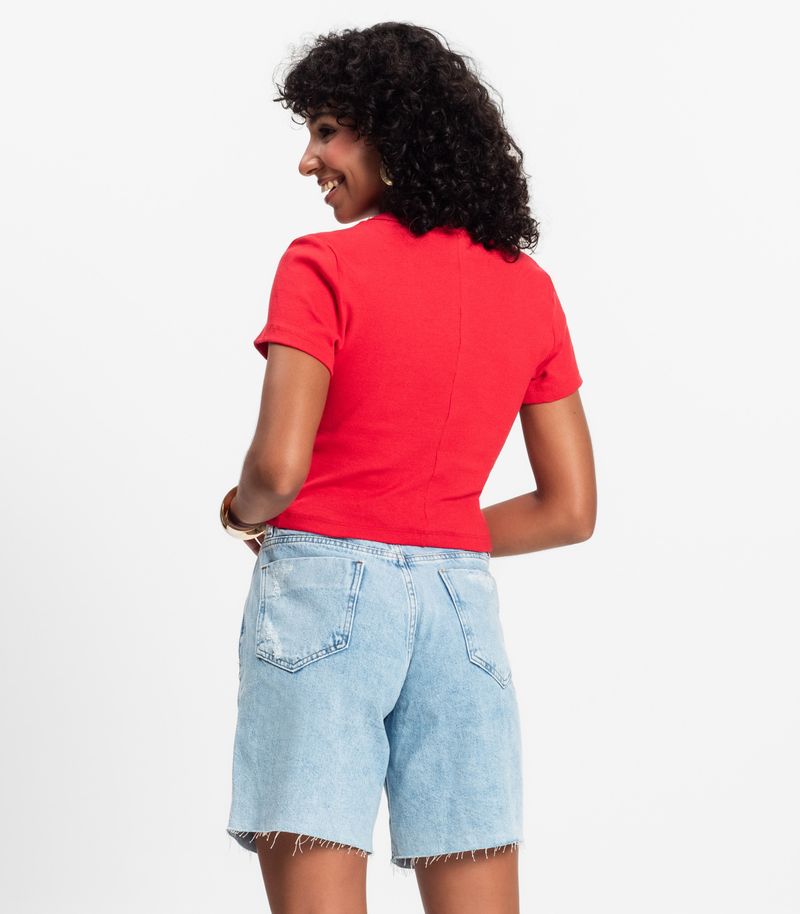 HomeFemininoBlusas e CamisetasManga CurtaBlusa Cropped Ribana Básica Rovitex Vermelho