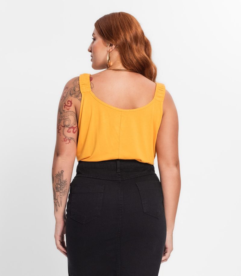A Blusa de Alça Feminina Plus Size Secret Glam é a peça básica que não pode faltar no seu guarda-roupa. Confeccionada em viscotorcion, um tecido conhecido por sua durabilidade e toque macio, esta blusa proporciona conforto e estilo em qualquer ocasião. Seu design de alças finas oferece frescor e liberdade de movimento, sendo ideal para os dias mais quentes. Versátil, ela pode ser combinada com calças, shorts ou saias, adaptando-se facilmente a diferentes looks.