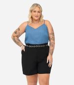 A Blusa de Alça Feminina Plus Size Secret Glam é uma combinação perfeita de conforto e estilo. Feita em new liocel, oferece uma sensação suave e fresca à pele. Seu design apresenta um friso formando uma azelha, adicionando um toque de elegância e ajuste personalizado. Com detalhes cuidadosos, a frente e as cavas são realçadas por revel, proporcionando um visual refinado. Uma peça versátil, ideal para criar looks casuais ou sofisticados.