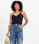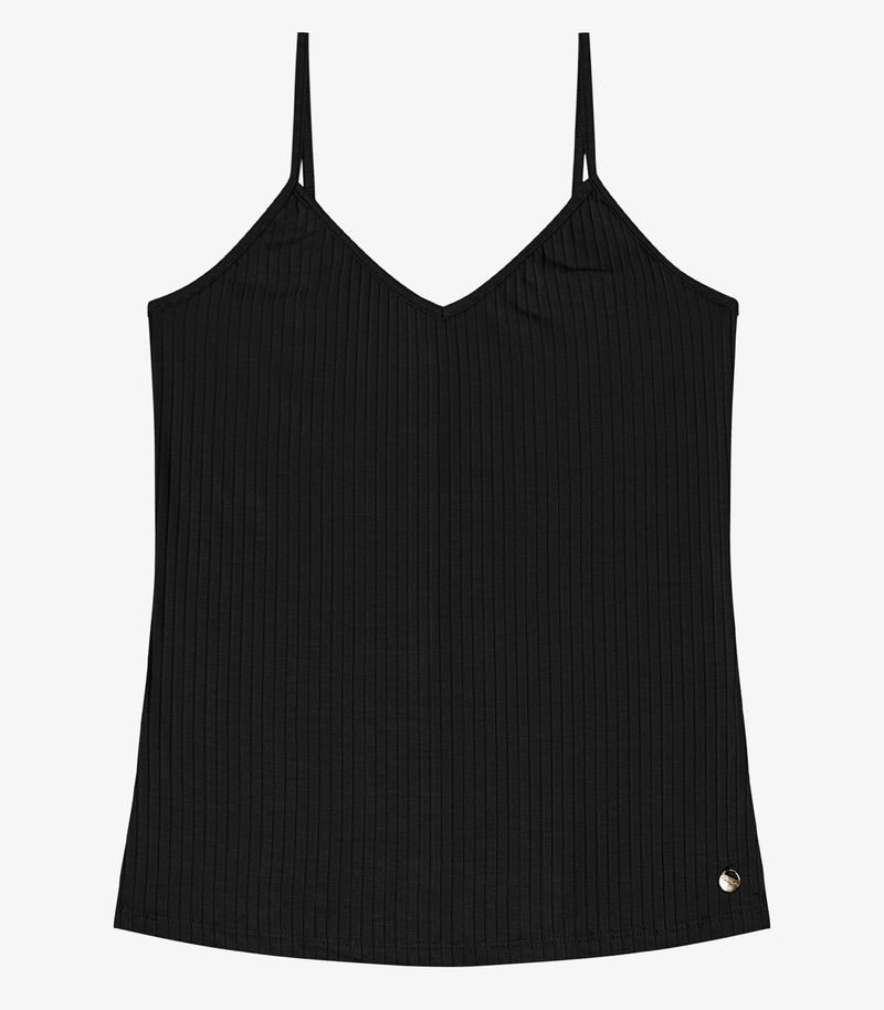 A blusa de alça é uma peça versátil e elegante que pode ser usada em diversas ocasiões. Feita em ribana canelada, um tecido macio e confortável, ela se ajusta perfeitamente ao corpo, valorizando as curvas femininas. Além disso, a plaquinha de metal na lateral dá um toque de sofisticação ao visual. Ideal para combinar com saias, shorts ou calças, essa blusa é uma excelente escolha para quem busca estilo e conforto.