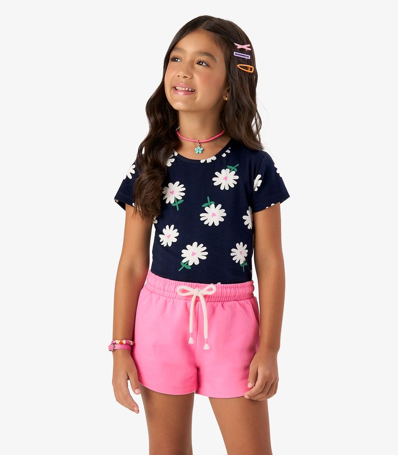Blusa feminina confeccionada em cotton, tecido macio e confortável. Possui mangas franzidas com detalhe delicado, acabamento no decote em friso e barra com costura reforçada. A frente da peça conta com estampa localizada de flores, com aplicação de glitter e strass termocolante, trazendo brilho e charme ao visual. Ideal para compor looks alegres e estilosos, garantindo praticidade e um toque especial para o dia a dia.