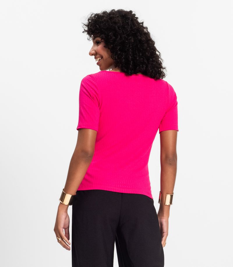 HomeFemininoBlusas e CamisetasBlusa em Ribana Canelada Rovitex Rosa