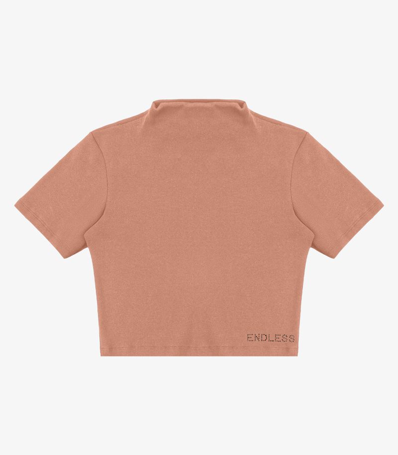 Blusa Feminina Endless confeccionada em ribana canelada, destacando-se pela gola chaminé com acabamento interno em overlock e cavas com bainha delicada. O comprimento cropped recebe acabamento refinado, enquanto o detalhe em strass, posicionado acima da barra, acrescenta brilho sutil. Uma peça autêntica e exuberante, perfeita para compor produções modernas com sofisticação casual.