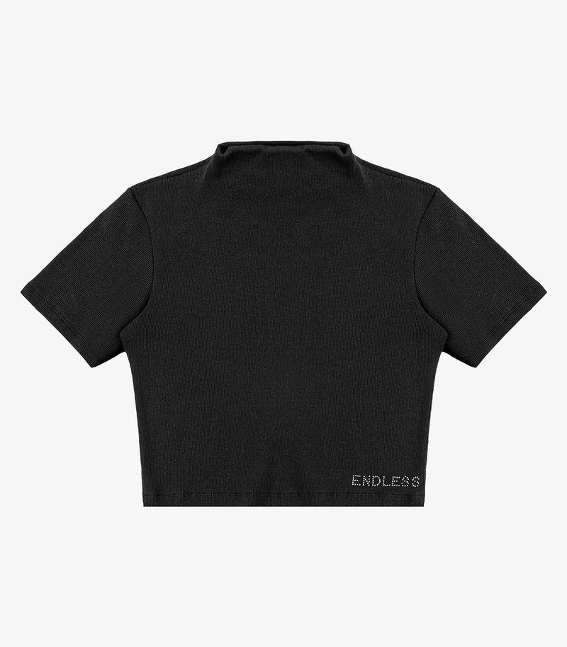 Blusa Feminina Endless confeccionada em ribana canelada, destacando-se pela gola chaminé com acabamento interno em overlock e cavas com bainha delicada. O comprimento cropped recebe acabamento refinado, enquanto o detalhe em strass, posicionado acima da barra, acrescenta brilho sutil. Uma peça autêntica e exuberante, perfeita para compor produções modernas com sofisticação casual.