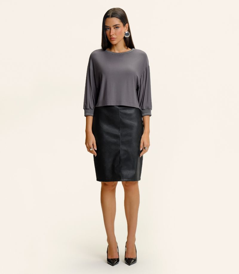 Blusa Feminina Ampla Manga 3/4 Viscose Endless Cinza