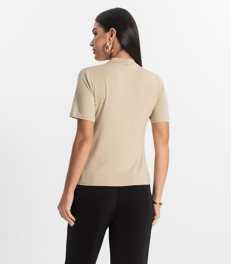 HomeFemininoBlusas e CamisetasManga CurtaBlusa Feminina Básica em Malha Visco Rovitex Bege