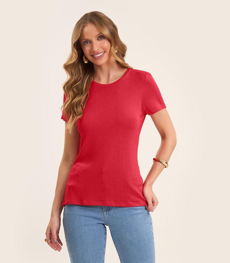 HomeFemininoBlusas e CamisetasManga CurtaBlusa Feminina Básica Visco Tricot Rovitex Vermelho