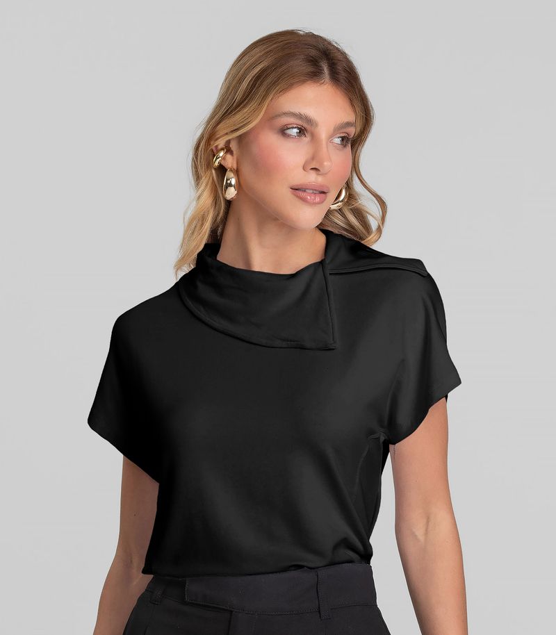 HomeFemininoBlusas e CamisetasManga CurtaBlusa Feminina Com Gola Diferenciada Dianna Preto