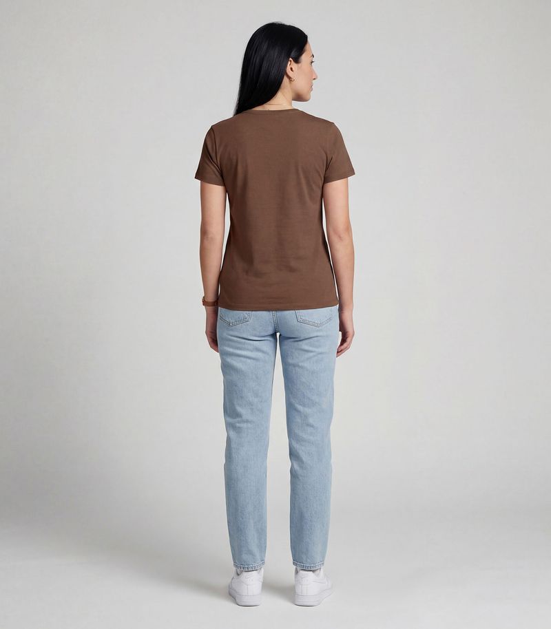 HomeFemininoBlusas e CamisetasManga CurtaBlusa Feminina em Malha Visco Infinita Cor Marrom