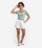 HomeFemininoBlusas e CamisetasManga CurtaBlusa Feminina em Malha Visco Infinita Cor Verde