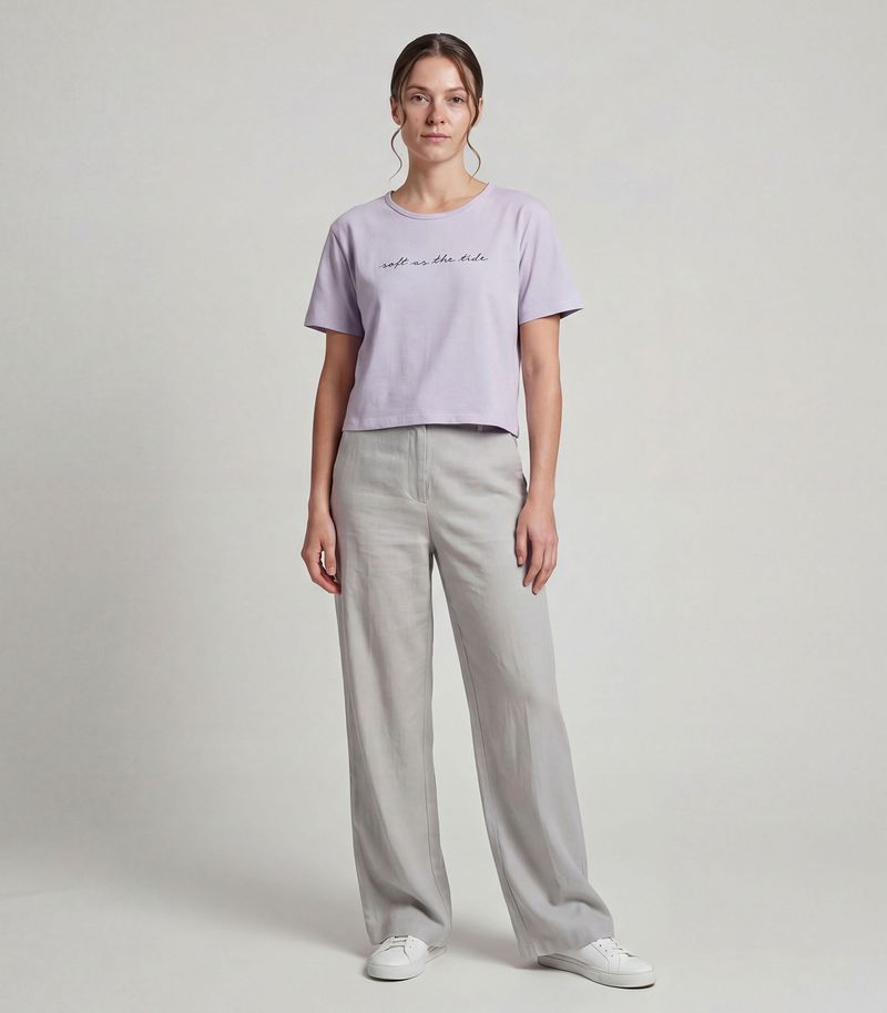 Blusa Feminina Infinita Cor, desenvolvida em Molecotton Viscose de toque suave e caimento leve. Possui decote com acabamento em friso, manga curta e modelagem curta, garantindo conforto e estilo moderno. Conta com estampa localizada frontal que adiciona personalidade ao visual, sendo perfeita para compor looks casuais com charme e praticidade.