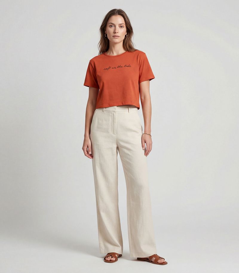 HomeFemininoBlusas e CamisetasManga CurtaBlusa Feminina em Molecotton Viscose Infinita Cor Laranja