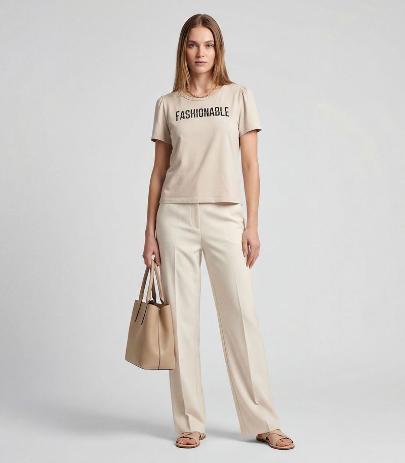 Blusa feminina confeccionada em visco tricot infinita cor, composta por 98% viscose e 2% elastano, proporcionando toque macio, leveza e ótimo caimento. Possui mangas curtas e decote redondo, garantindo conforto e praticidade para o uso diário. A estampa frontal acrescenta estilo e personalidade à peça, tornando-a versátil para diversas combinações. Ideal para compor looks casuais ou mais arrumados, unindo elegância, conforto e modernidade.