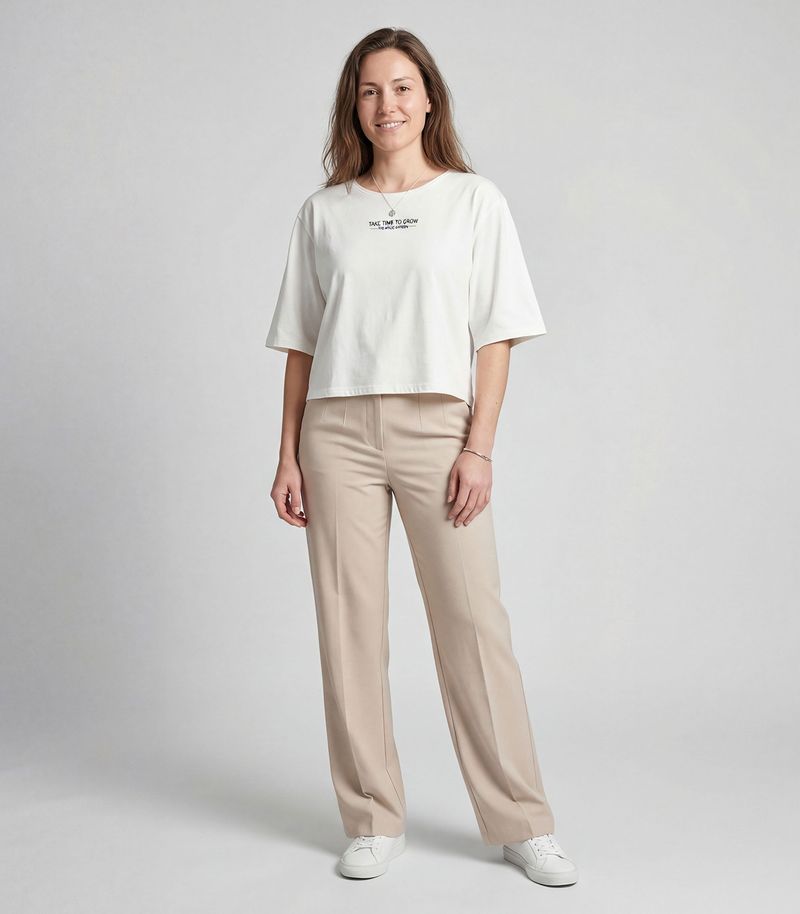 HomeFemininoBlusas e CamisetasManga CurtaBlusa Feminina Em Viscotorcion Infinita Cor Bege