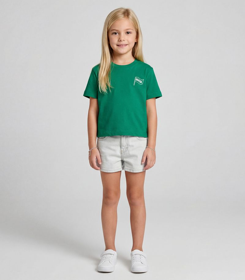 Blusa Feminina Infantil Brasil Rovitex Kids, desenvolvida em cotton leve, garantindo conforto e liberdade para as pequenas aproveitarem cada momento. Possui decote redondo em friso com reforço, cava deslocada e modelagem soltinha, que proporciona um caimento moderno e confortável. A estampa localizada frontal e nas costas com tema Brasil deixa o visual ainda mais alegre e perfeito para torcer e entrar no clima da Copa com muito estilo
