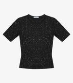 Blusa Feminina Endless confeccionada em ribana com glitter, que garante brilho delicado e toque moderno. Possui modelagem ajustada ao corpo, manga curta e decote redondo com acabamento em friso para mais conforto. A barra tem costura dupla, garantindo melhor caimento e durabilidade. Perfeita para compor looks casuais com um toque de charme e brilho, combinando conforto e estilo no dia a dia.