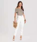 Blusa Feminina Dianna, confeccionada em Malha Ribana Canelada de Viscose, que alia maciez, elasticidade e ótimo caimento. Possui modelagem justa ombro a ombro, destacando o colo com elegância.O acabamento duplo com elástico embutido na parte superior garante segurança, conforto e melhor sustentação. Versátil e moderna, é ideal para compor looks casuais ou mais sofisticados, combinando com saias, calças ou shorts.