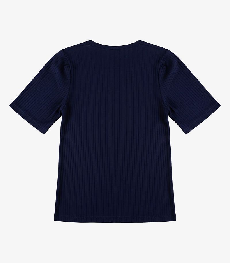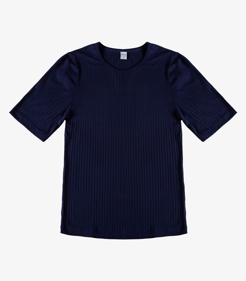 HomeFemininoBlusas e CamisetasManga CurtaBlusa Feminina Ribana Canelada Infinita Cor Azul