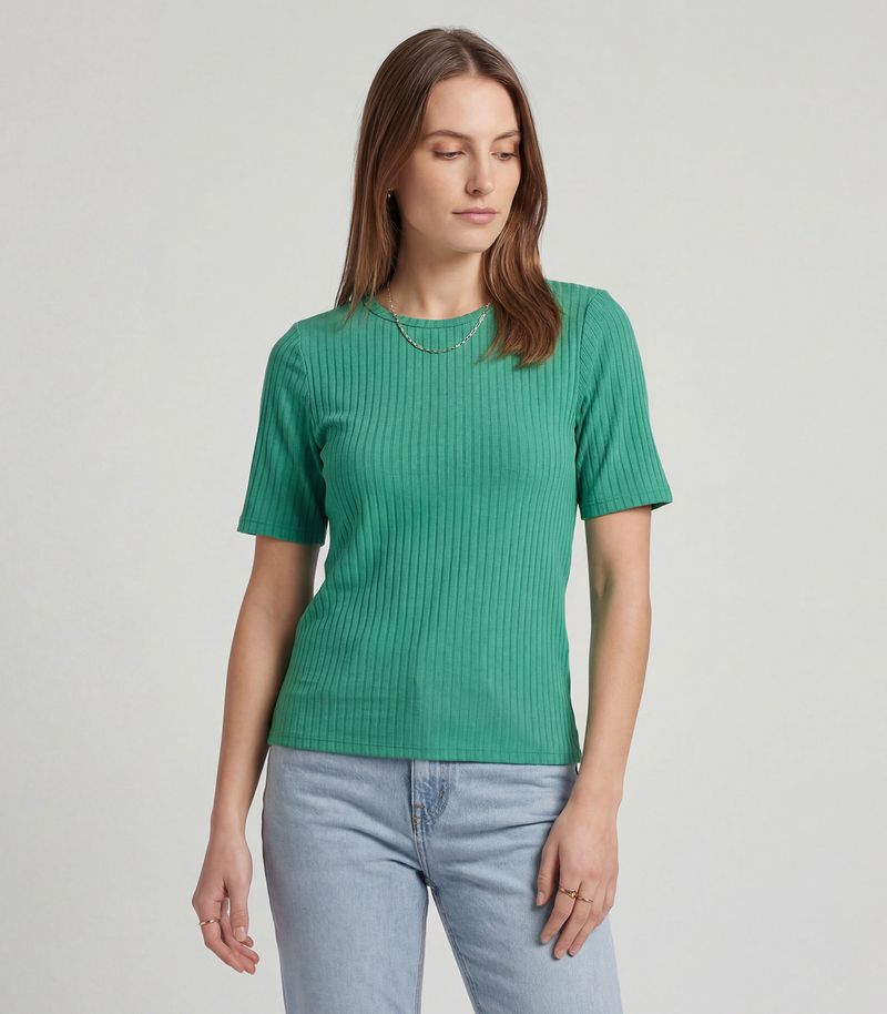 HomeFemininoBlusas e CamisetasManga CurtaBlusa Feminina Ribana Canelada Infinita Cor Verde