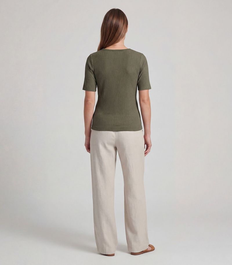 HomeFemininoBlusas e CamisetasManga CurtaBlusa Feminina Ribana Canelada Infinita Cor Verde