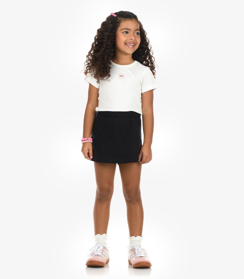 Blusa Feminina Rovi Kids, confeccionada em ribana de viscose 2x1, proporcionando toque macio e extremo conforto. Apresenta base lisa com estampa localizada e patch termocolante central, conferindo charme delicado à peça. O decote redondo em retilínea possui reforço em friso na parte posterior, garantindo maior durabilidade. As mangas e a barra recebem acabamento em babado, que oferece movimento leve e caimento impecável.
