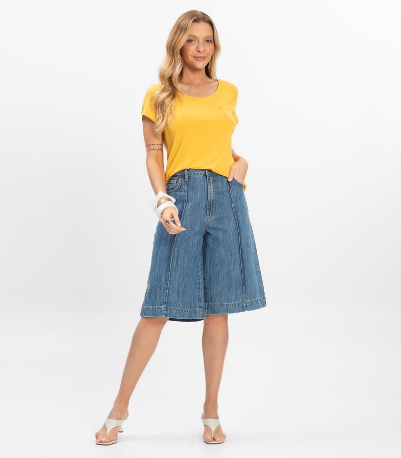 HomeFemininoBlusas e CamisetasManga CurtaBlusa Feminina Viscotorcion Com Bolso Rovitex Amarelo