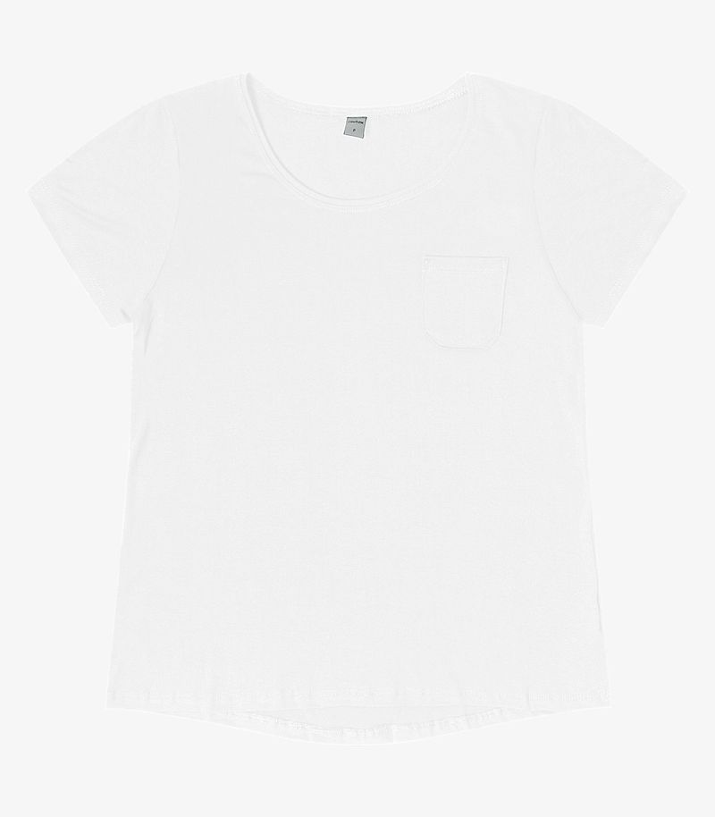 HomeFemininoBlusas e CamisetasManga CurtaBlusa Feminina Viscotorcion Com Bolso Rovitex Branco