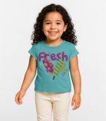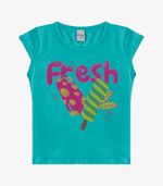 Blusa Infantil Menina Infinita Cor, confeccionada em malha cotton leve, proporcionando conforto e maciez. Possui decote redondo com friso, manga curta estilo cava e estampa localizada "Fresh" na parte frontal. As costas são lisas, com acabamento limpo e discreto. O comprimento da peça vai até o início do quadril, ideal para compor looks casuais, frescos e despojados no dia a dia.