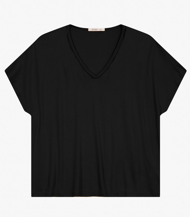 HomePlus SizeFemininoBlusas e CamisetasBlusa Manga Curta em Viscotorcion Secret Glam Preto