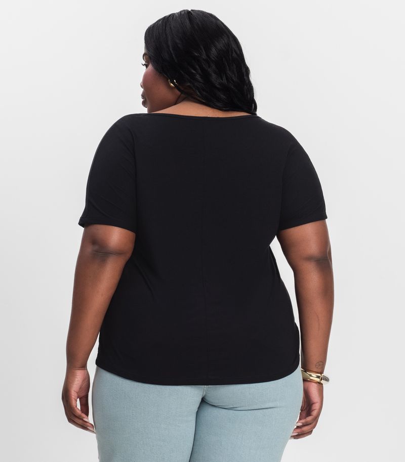 HomePlus SizeFemininoBlusas e CamisetasBlusa Manga Curta Feminina Plus Size Secret Glam Preto