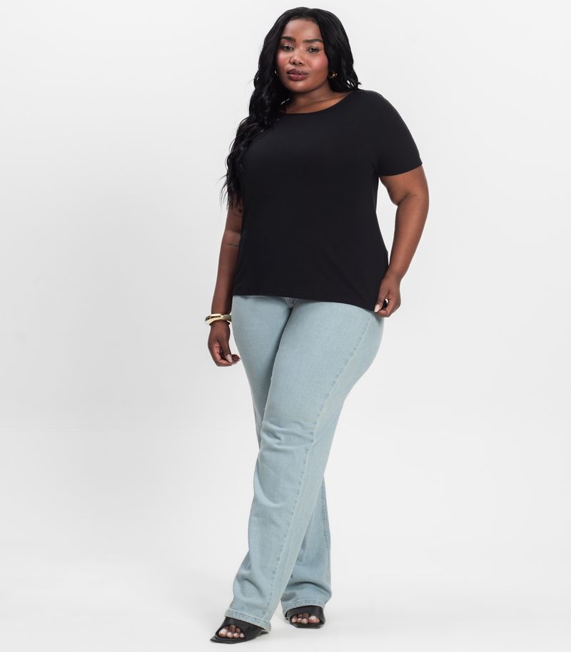 Blusa Manga Curta Feminina Plus Size Secret Glam Preto