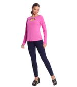 Blusa feminina Rovitex confeccionada em malha Delicate, com gola redonda e detalhe vazado no frontal. Possui modelagem ajustada e manga longa. Ideal para compor looks descontraídos e elegantes. Combinar com calças jeans e sapatos baixos para um visual moderno.
