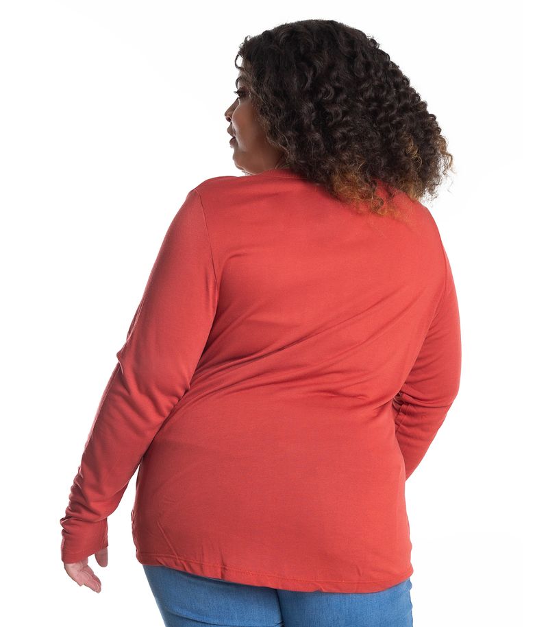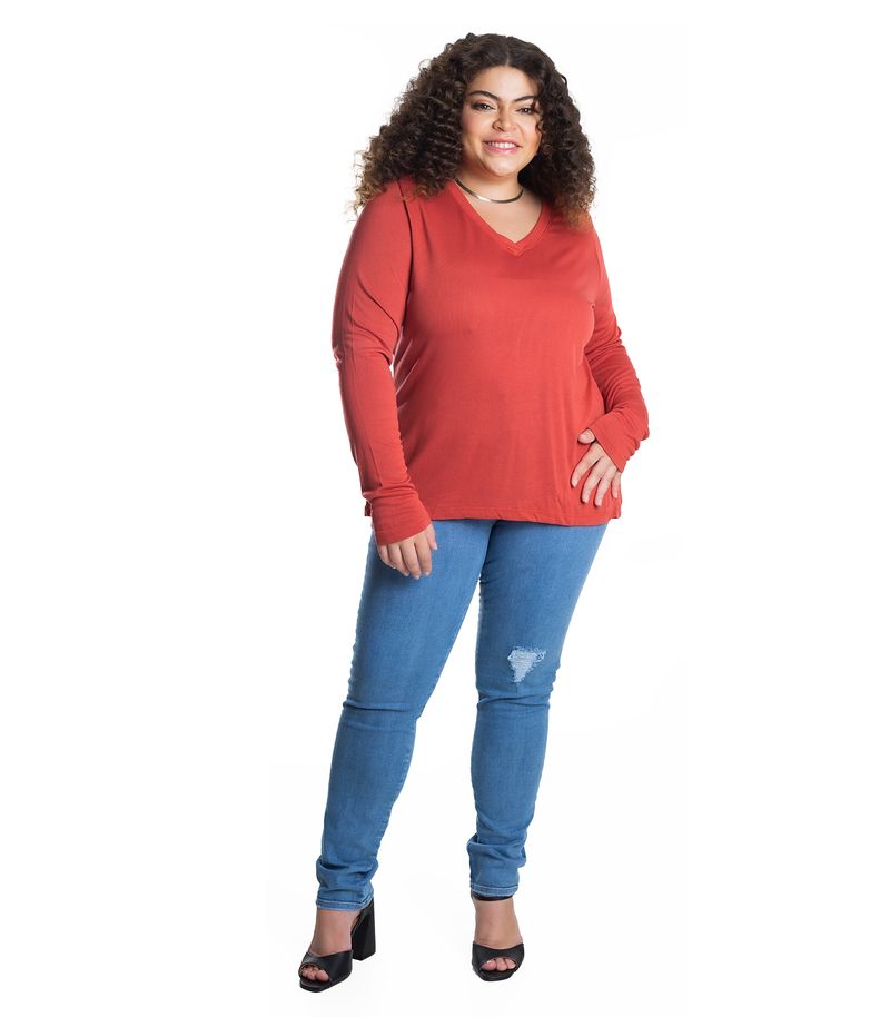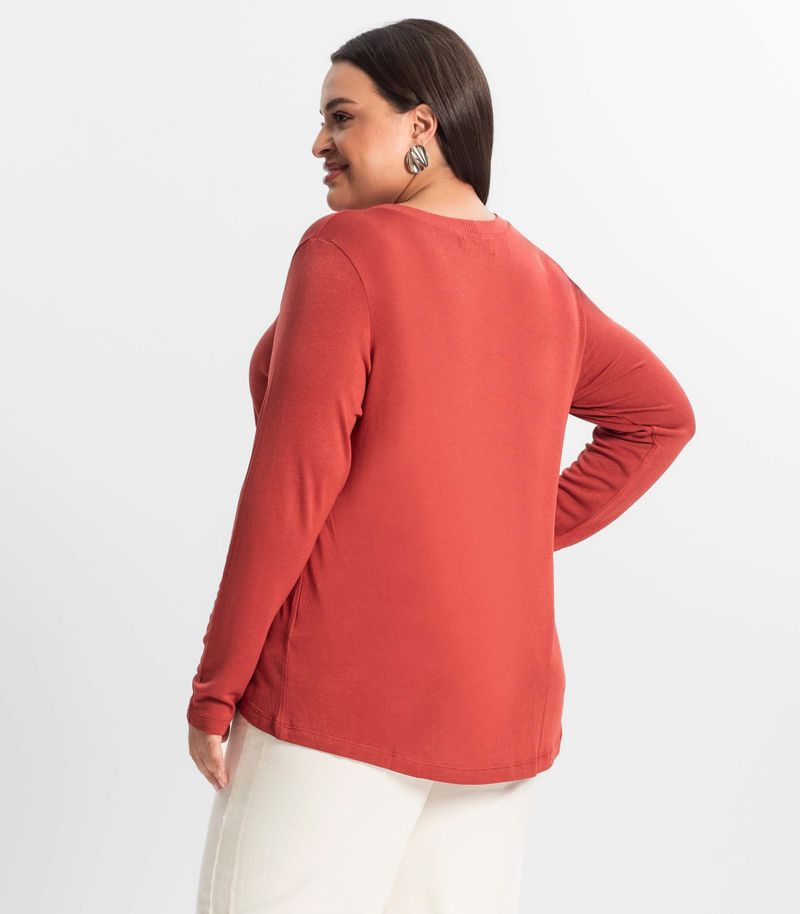 HomePlus SizeFemininoBlusas e CamisetasBlusa Manga Longa Visco Tricot Secret Glam Marrom
