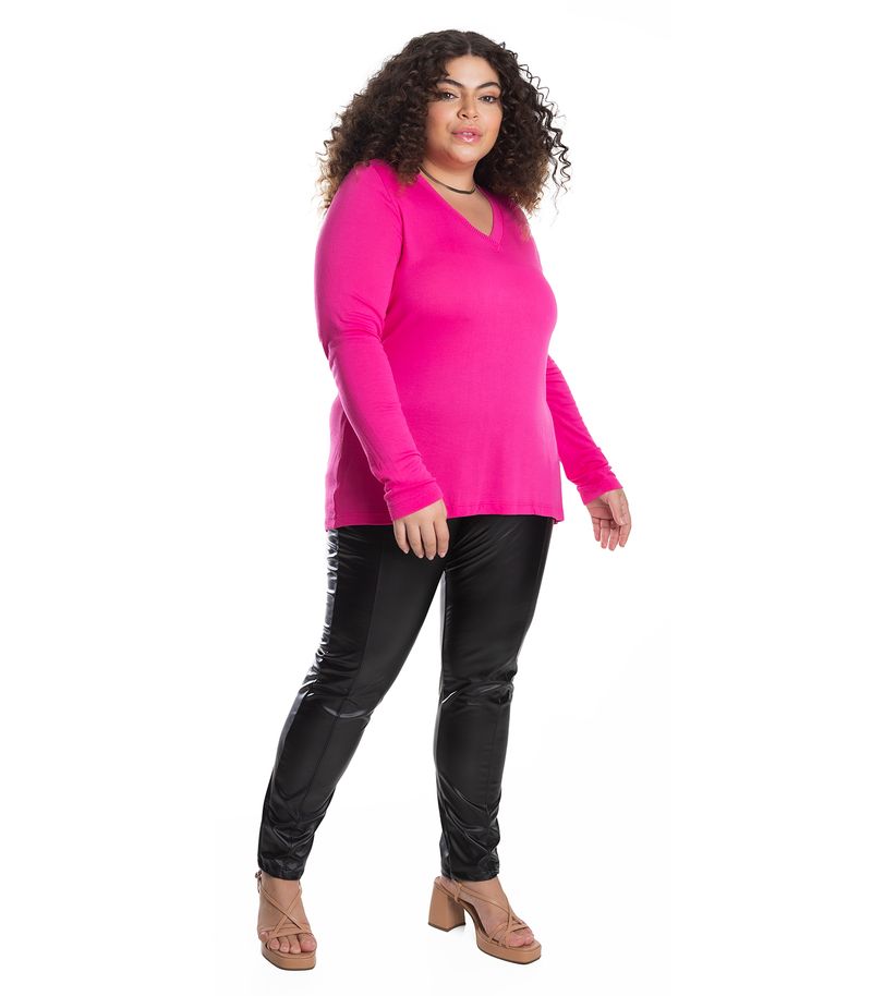 HomePlus SizeFemininoBlusas e CamisetasBlusa Manga Longa Visco Tricot Secret Glam Rosa