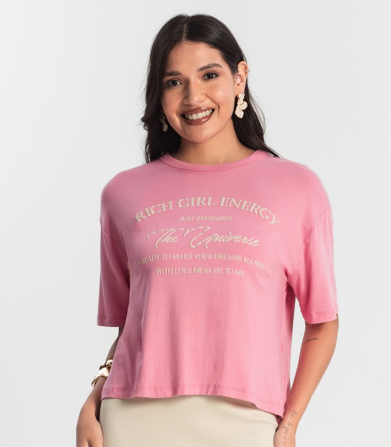 HomeFemininoBlusas e CamisetasManga CurtaBlusa T- Shirt Feminina Rovitex Rosa