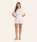 Blusa Feminina Endless, confeccionada em Viscose Listras Lurex. O modelo de base lisa apresenta decote redondo com friso rebatido, mangas curtas com acabamento em bainha e barra também arrematada para melhor caimento. Nas costas, conta com etiqueta interna discreta. Peça leve e elegante, perfeita para dias quentes, garantindo frescor e um visual solto e confortável.