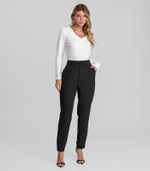 Calça Cenoura Feminina Dianna, confeccionada em tecido Barbie Strong, que oferece estrutura, conforto e excelente caimento. Possui base lisa, cós entretelado com pesponto de beira, bolso faca discreto com acabamento refinado e pesponto interno. Conta com braguilha funcional com zíper de nylon, modelagem cenoura com pernas levemente afuniladas, bainha no comprimento para melhor ajuste e pences nas costas, além de aviamento embutido. Uma peça sofisticada, ideal para compor looks formais e elegante