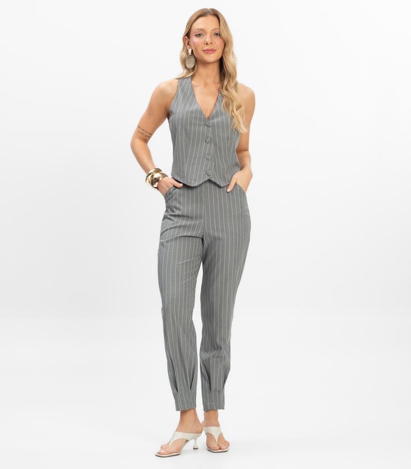 A Calça Feminina Em Alfaiataria Risca Giz Toda Nua une sofisticação e conforto em uma modelagem moderna. Confeccionada em 69% poliéster, 29% viscose e 2% elastano, proporciona caimento impecável com leve elasticidade. O padrão risca de giz confere elegância clássica, enquanto a modelagem cenoura valoriza a silhueta. Possui bolsos faca frontais funcionais e fechamento com zíper traseiro, garantindo praticidade e estilo em produções versáteis para diversas ocasiões.