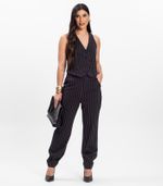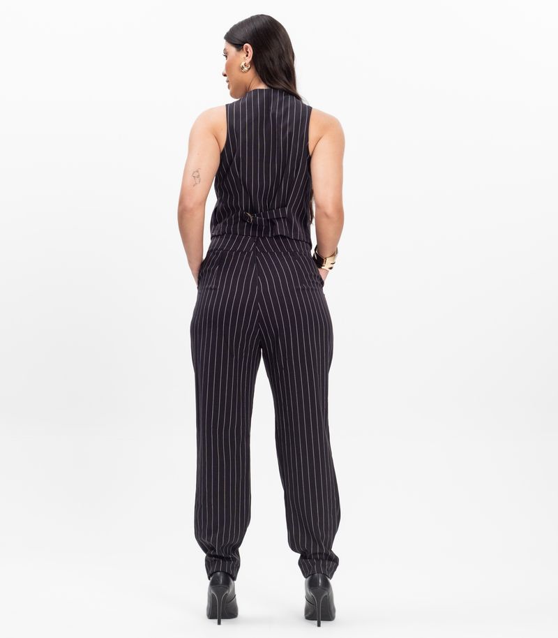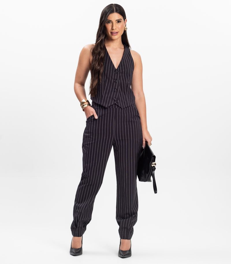 Calça Feminina Em Alfaiataria Risca Giz Toda Nua Preto