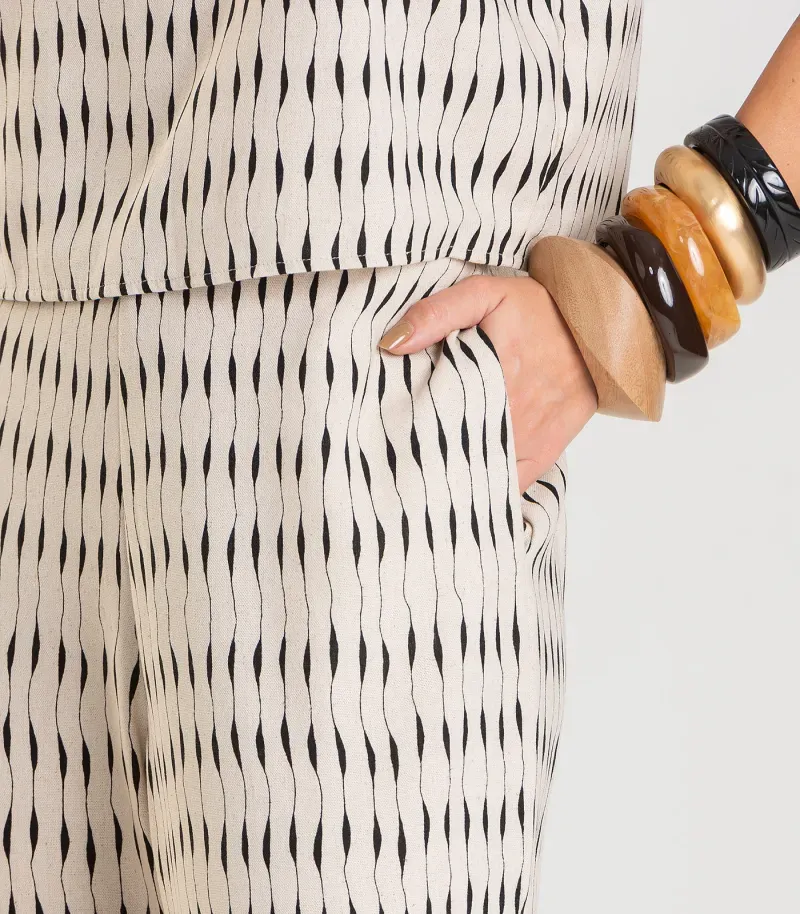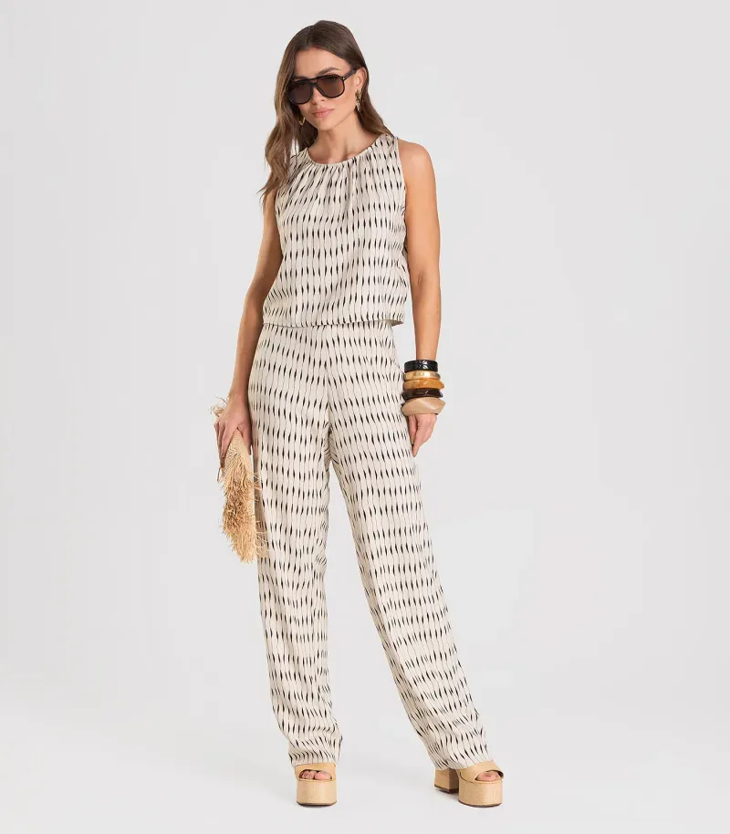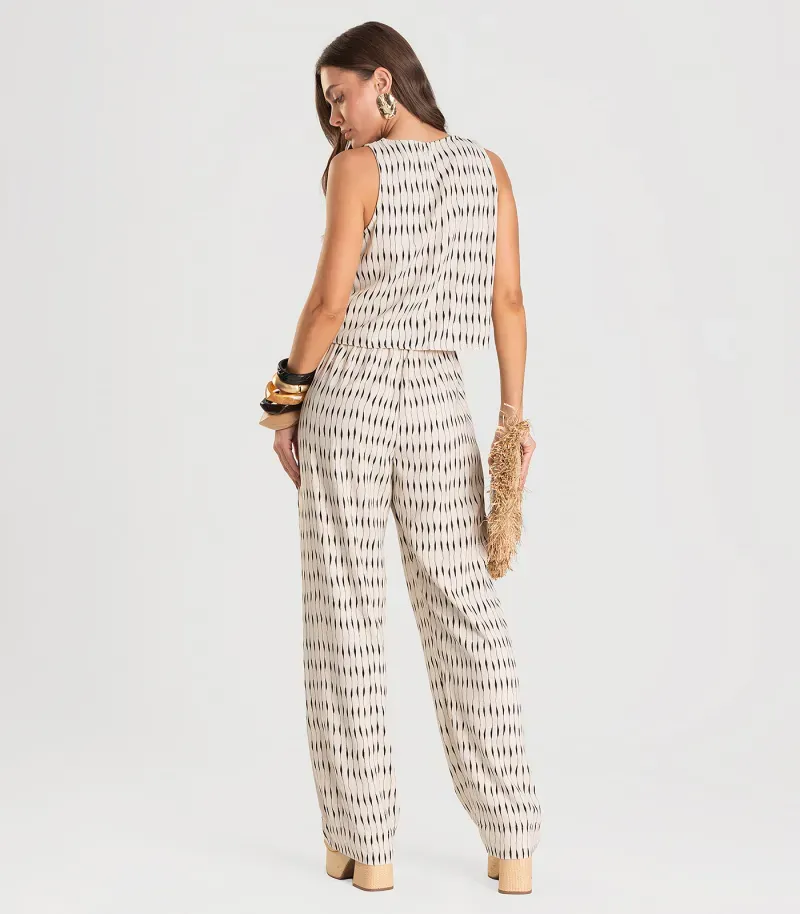 Calça Feminina Dianna, confeccionada em Tecido Linho Estampado, oferecendo leveza e sofisticação. Possui modelagem pantalona, cós liso entretelado com pesponto, bolso lateral com acabamento interno, bainha larga e cós traseiro com elástico para melhor ajuste. Ideal para produções elegantes e confortáveis no dia a dia, passeios ou ocasiões casuais que pedem estilo com praticidade.