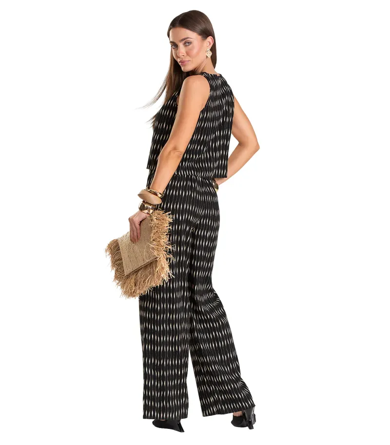 Calça Feminina Dianna, confeccionada em Tecido Linho Estampado, oferecendo leveza e sofisticação. Possui modelagem pantalona, cós liso entretelado com pesponto, bolso lateral com acabamento interno, bainha larga e cós traseiro com elástico para melhor ajuste. Ideal para produções elegantes e confortáveis no dia a dia, passeios ou ocasiões casuais que pedem estilo com praticidade.