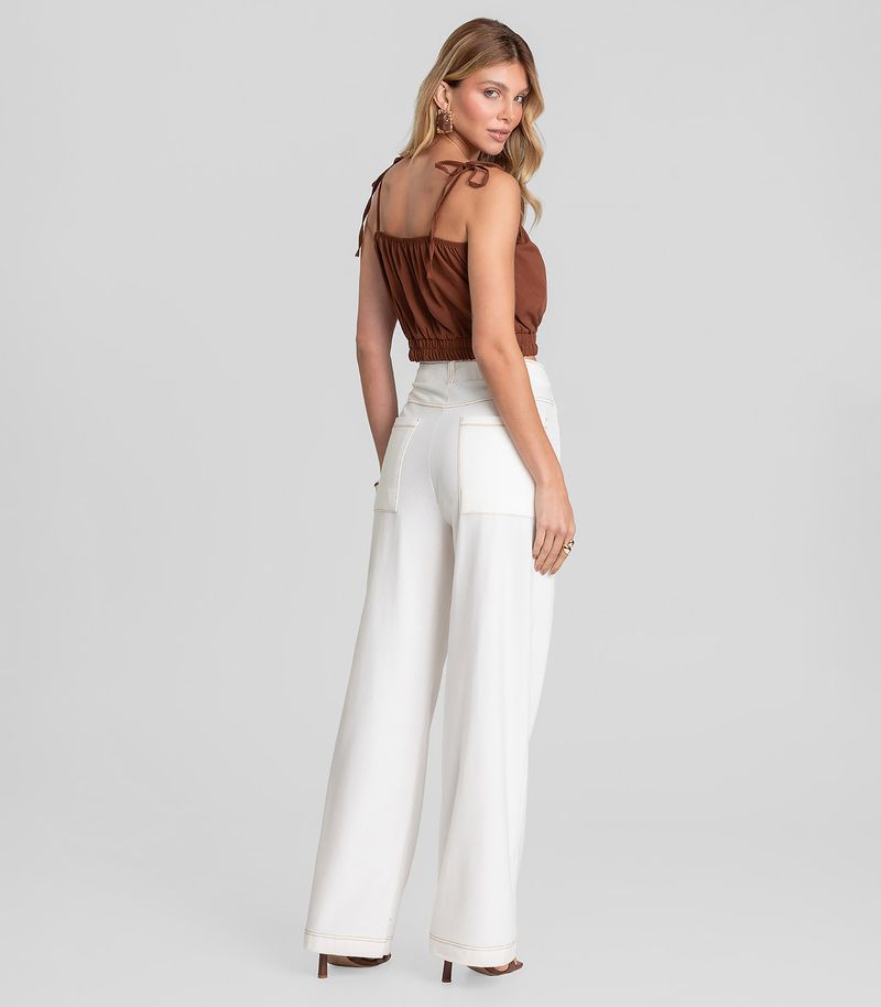 Calça Feminina Pantalona Dianna, confeccionada em Molecotton Denim, que oferece conforto, estrutura e excelente caimento. Possui base lisa, cós entretelado com pesponto superior, abertura com caseado horizontal e braguilha funcional entretelada com zíper de nylon e pesponto aparente. Conta com bolso fake arredondado, bainha na barra para acabamento impecável e, nas costas, bolso aplicado que valoriza o design. Uma peça versátil e sofisticada, ideal para compor looks elegantes e casuais.